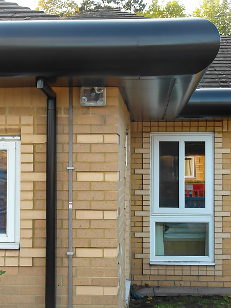 • Aluminium high security anti vandal and anti climb downpipe fitted to moulded ogee guttering